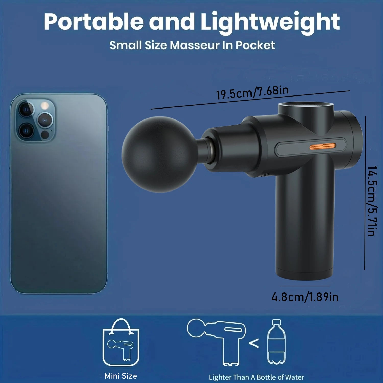 6. Easy to carry: mini size massage gun, it is also easy to put all the accessories in a compact