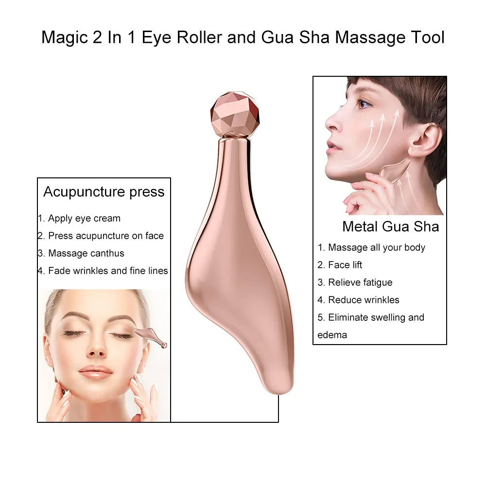 Face Massager Roller and Gua Sha Set, 2-IN-1 Facial Roller Metal Facial Massage Tool for Face Eye Neck Arms Legs