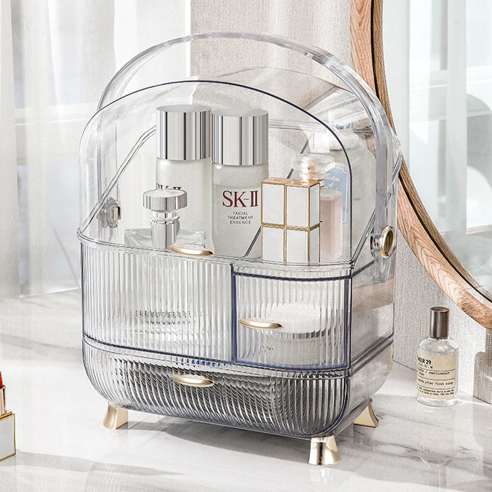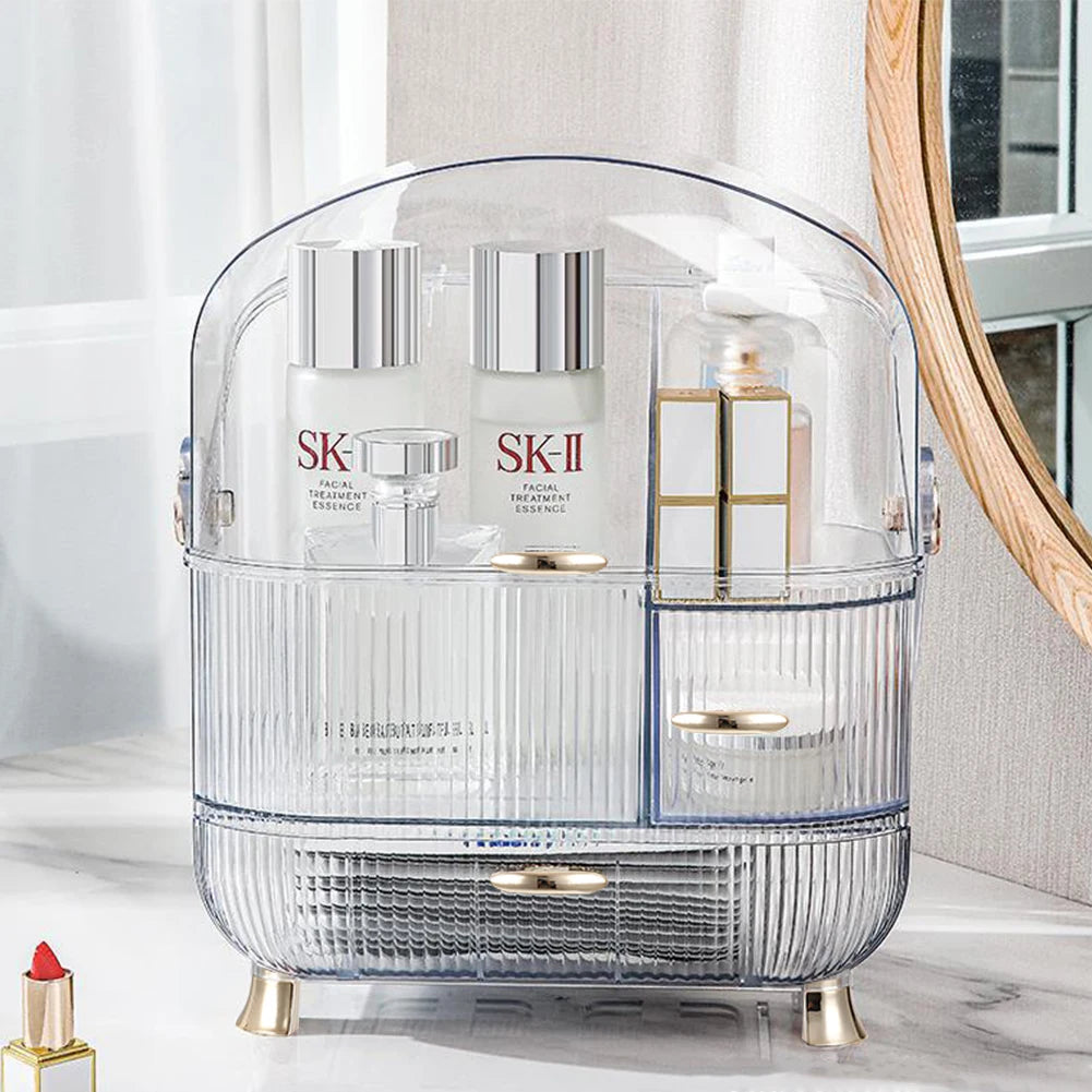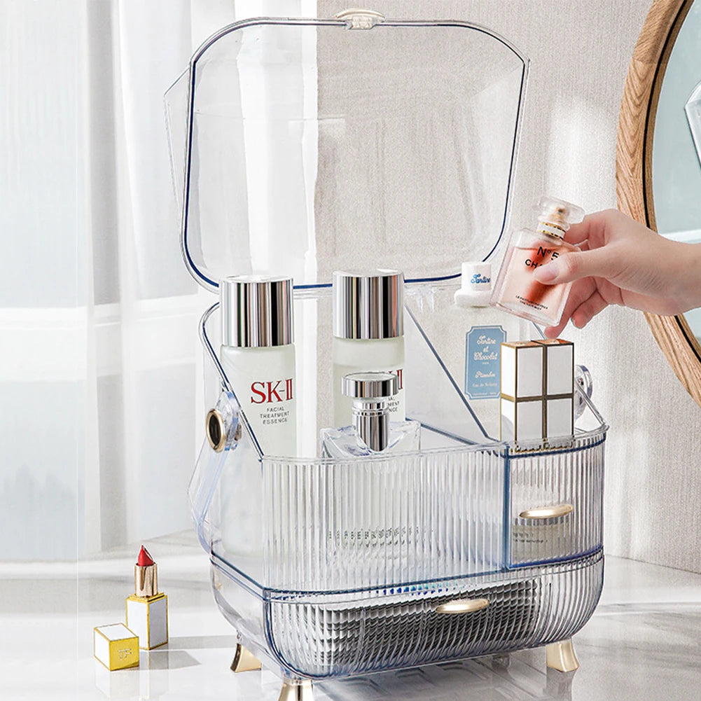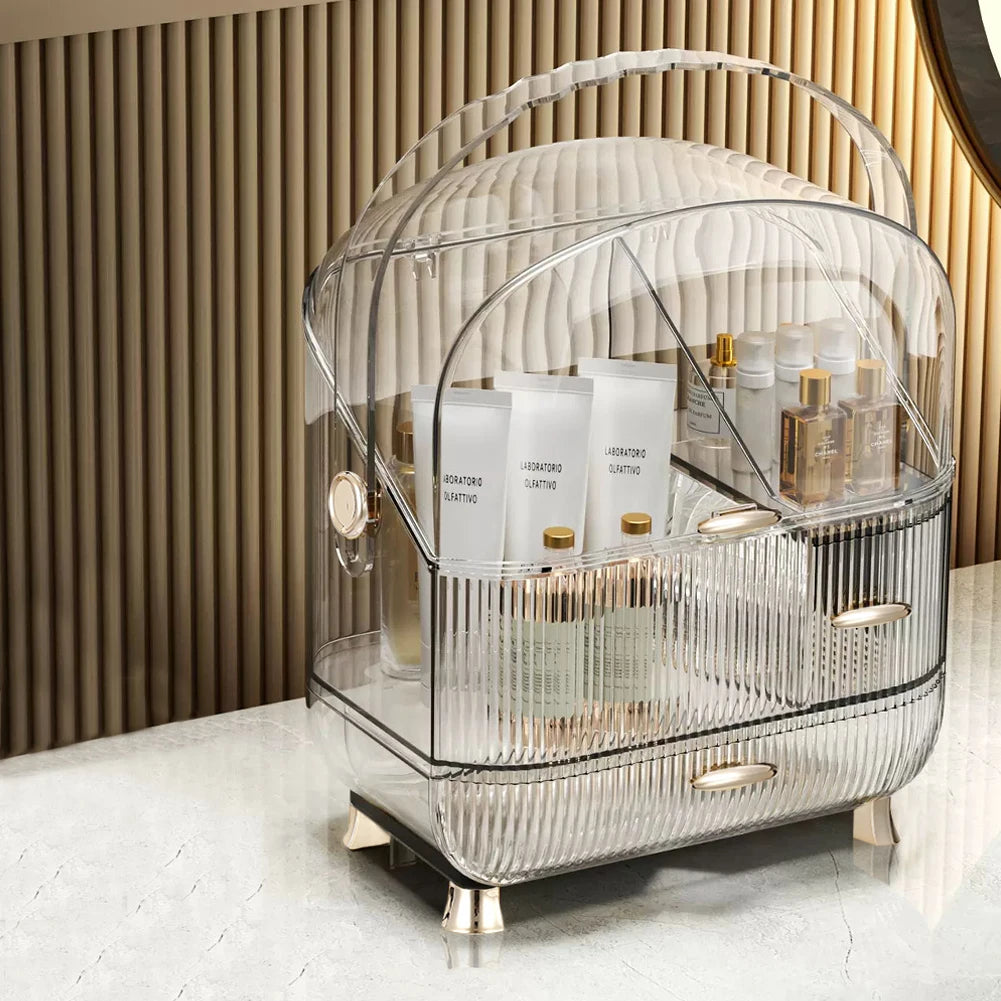 Transparent Makeup Storage Organiser Skincare Organiser 2 Drawers Beauty Holder Cosmetic Organisers for Bathroom, Dressing Table Organiser Dustproof Waterproof